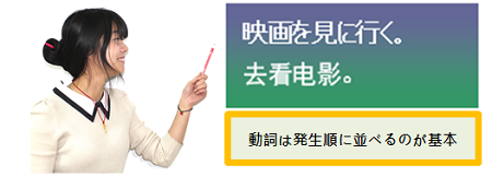 中国語は「起きた順に動詞を並べる。」そういう風に習いますね。