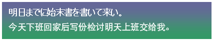 「今日仕事が終わって家に帰ったら始末書を書いて明日出勤して私に渡しなさい。」