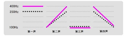 これがどこが悪いかはっきりわからないけれど、やっぱり日本人の中国語っていうことになってしまう。実際はピンクの実線がネイティブの中国語なんですよ。