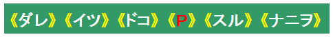 「ダレイツドコピースルナニヲ」