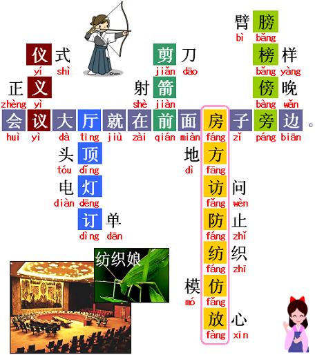 方(一声)、纺(二声)、仿(三声)、放(四声)…